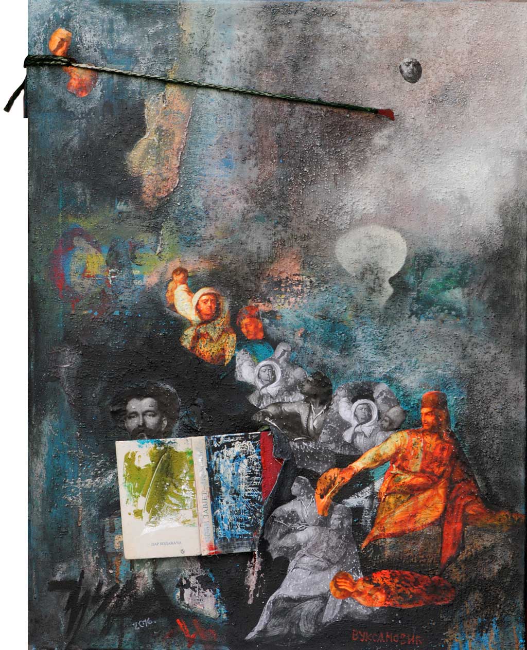 Danilo Vuksanović kao da je, stvarajući ova dela, pred sobom imao Jakšićevu potrebu da stavi i samu umetnost u službu istine. Možda su zato knjige na ovim platnima okrenute naopako, možda su otvorene stranice istih put istine i umetničke slobode, koju ćemo mi, kao posmatrači i neka buduća pokolenja, ispisivati svojim mislima.