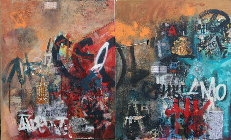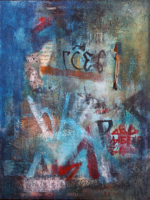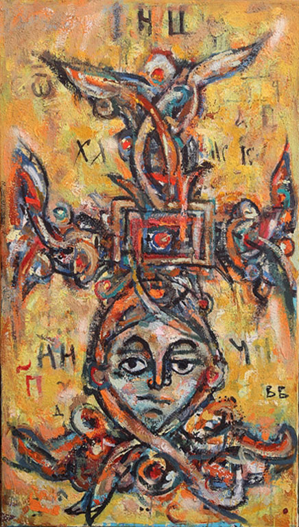 Radovi na papiru u tehnici kolaža kao i trake velikih formata u digitalnoj tehnici na kojima su invertovani crteži u formi stegova, osmišljeni su tako da prate pomenute motive u izložbenom prostoru. Takođe, biće izložene i kopije zapisa sa ikona izvedenih na lazuriranim posrebrenim pločama.
